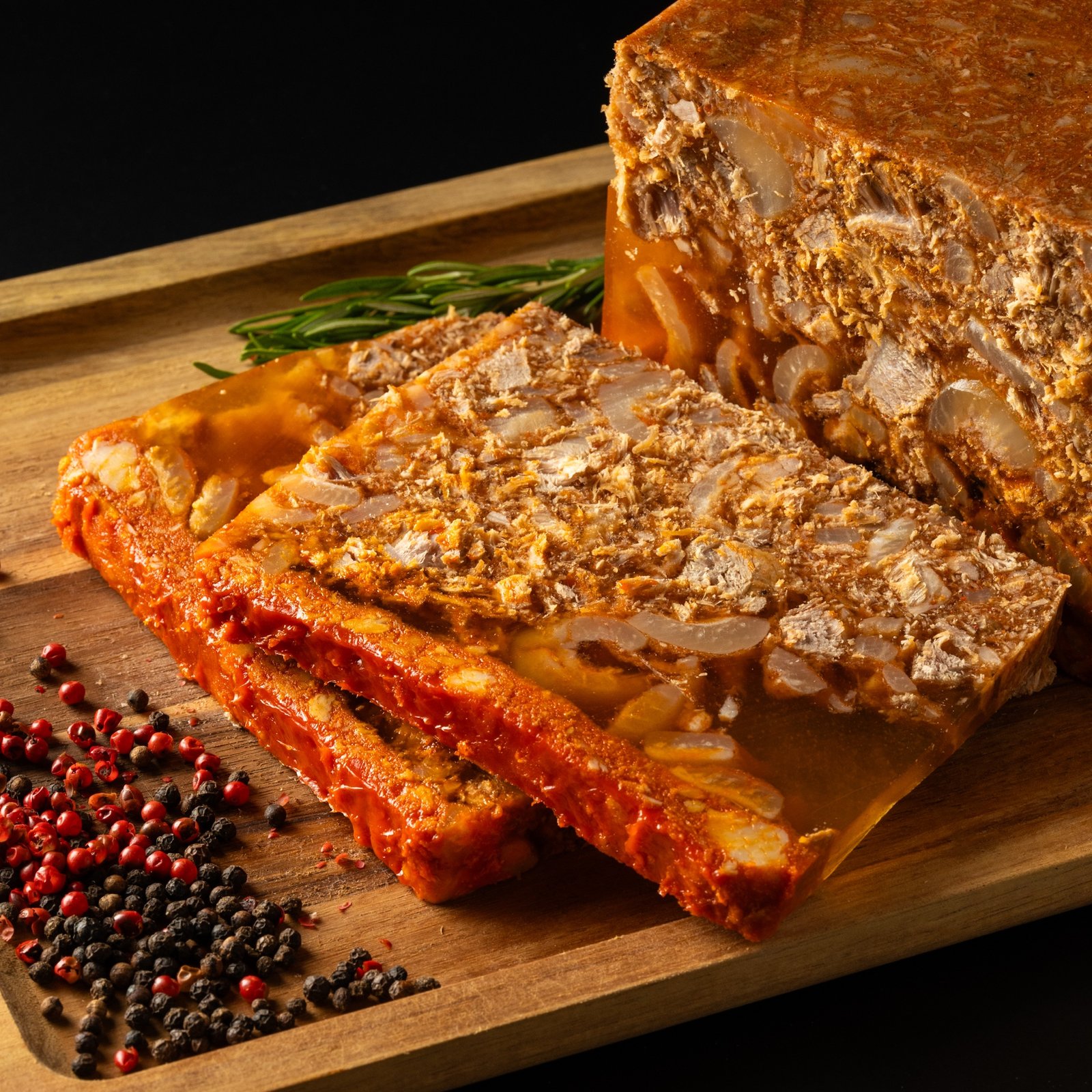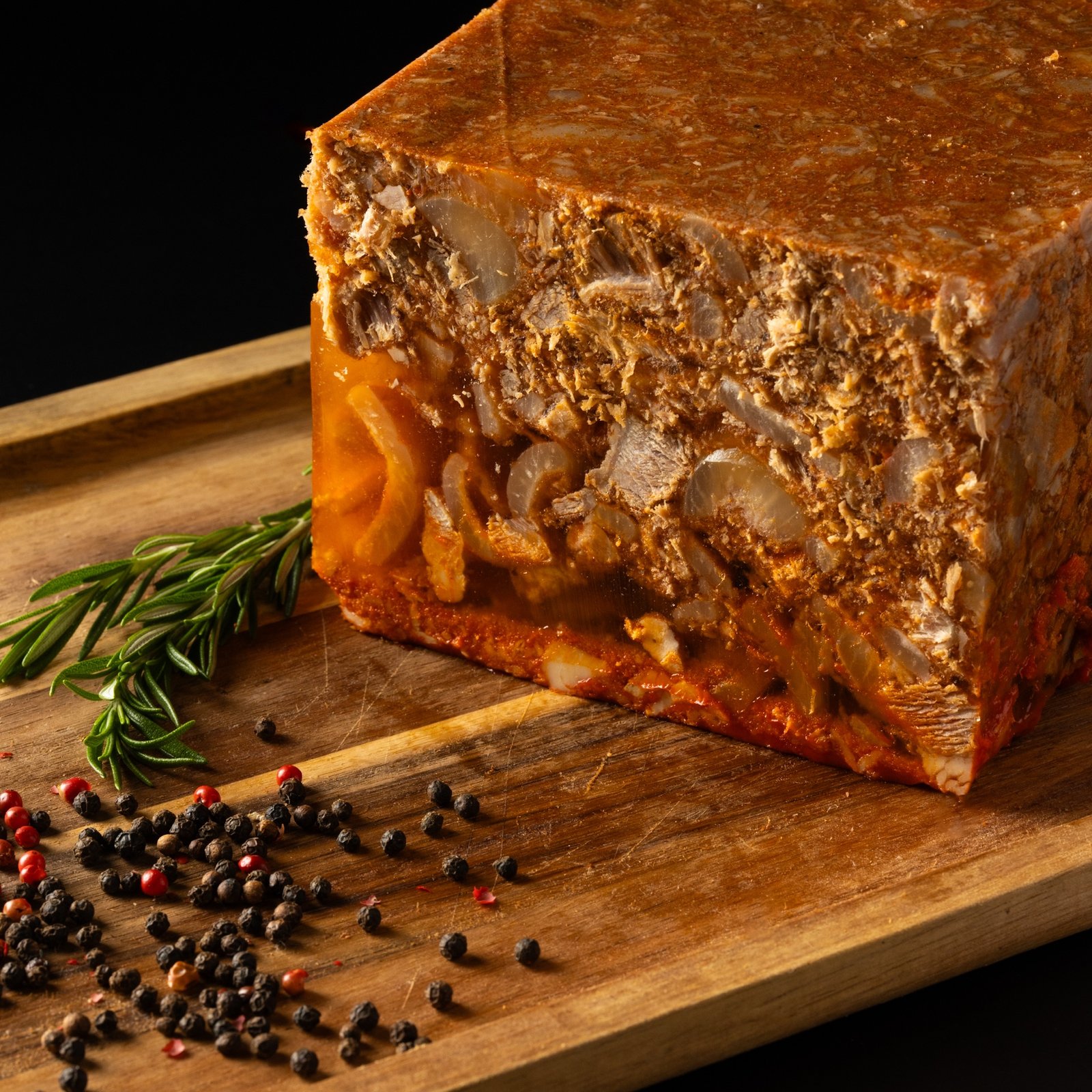 Conosciuta anche come ’Njelatina o Gelatina di maiale, è un salume tipico della tradizione calabrese ottenuto dalle parti più saporite del maiale (testa, cotenna e guanciale), cotte lentamente e legate con il loro stesso collagene naturale.